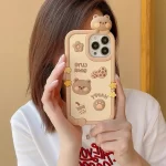 گارد فانتزی خرسی 3D سیلیکونی مناسب گوشی ایفون 14PROMAXقاب جذاب فانتزی خرسی 3D در رنگ کرمی